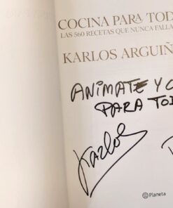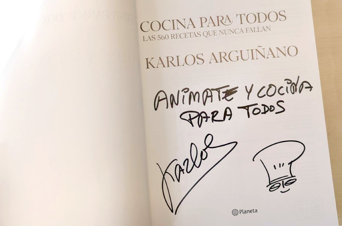Disfruta de la cocina con el estilo inconfundible de Karlos Arguiñano. Este pack exclusivo incluye su nuevo libro “Cocina para todos” firmado y un elegante taco de cuchillos ARCOS con su firma grabada.